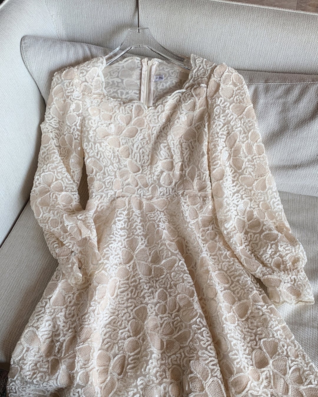 上品なベージュカラーのスパンコールが