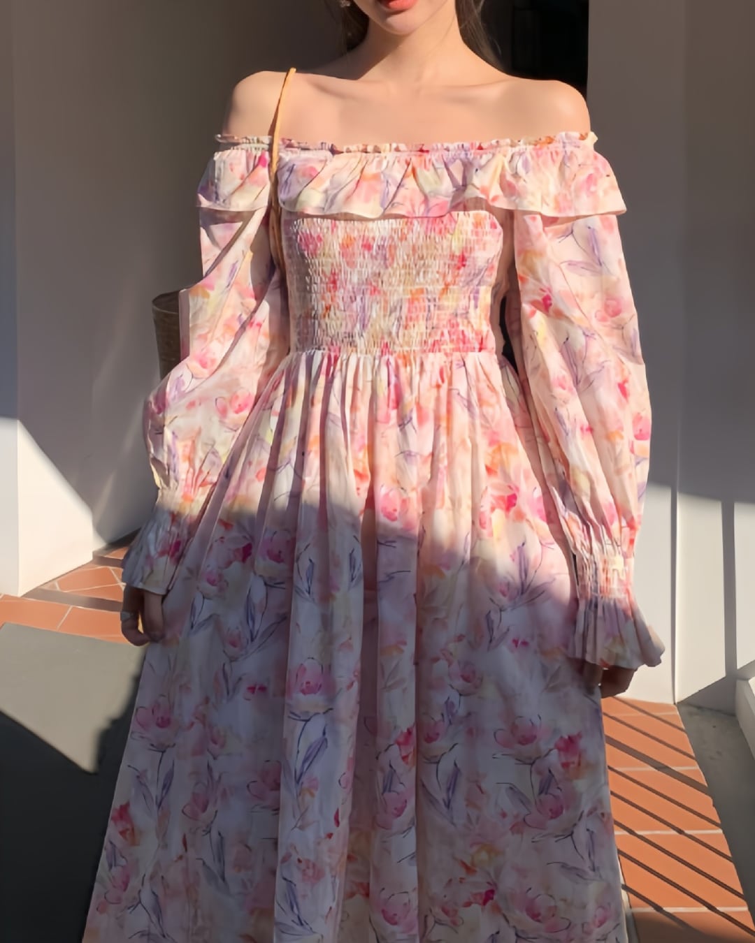 オープンショルダーフローラルギャザーワンピース 2502024