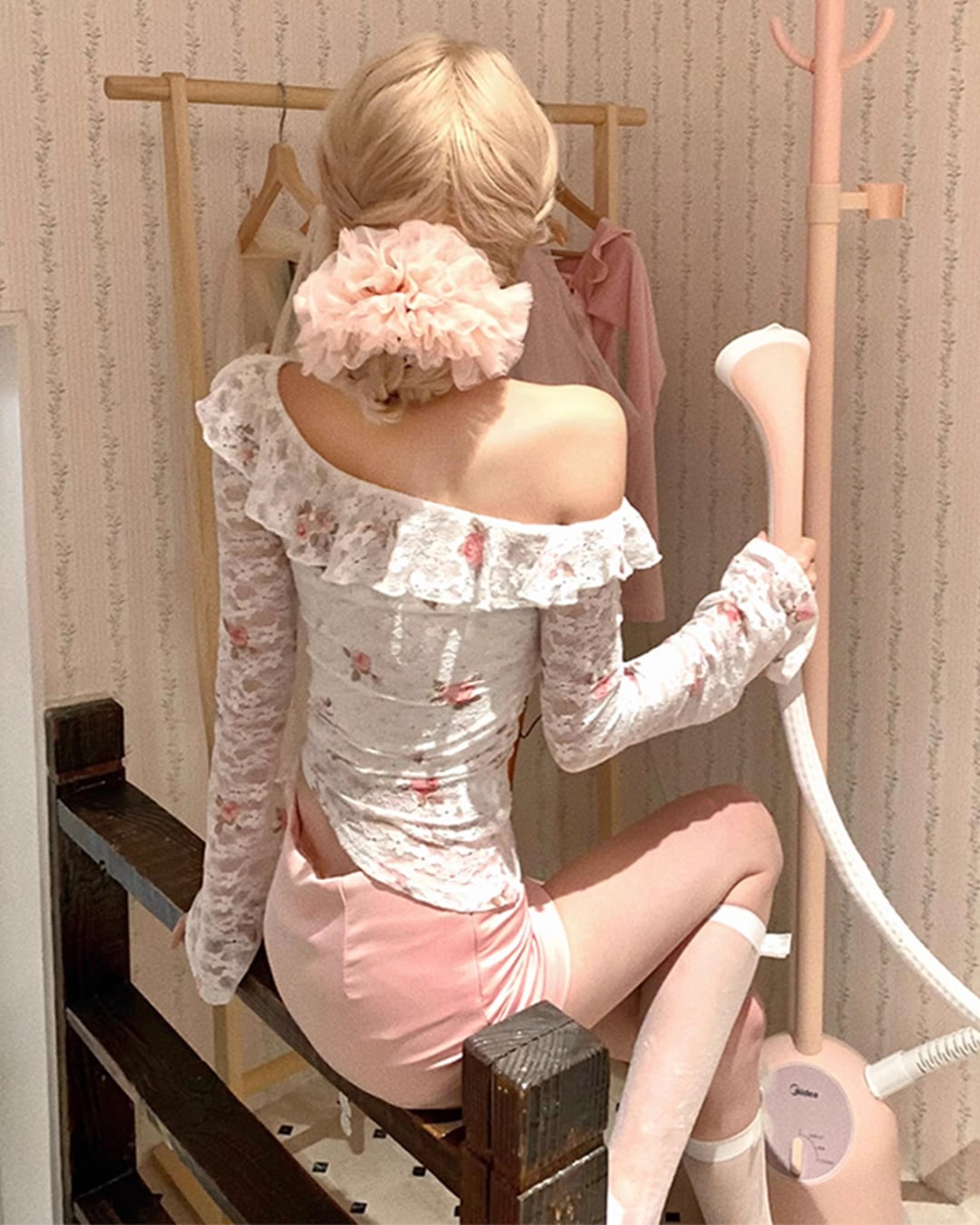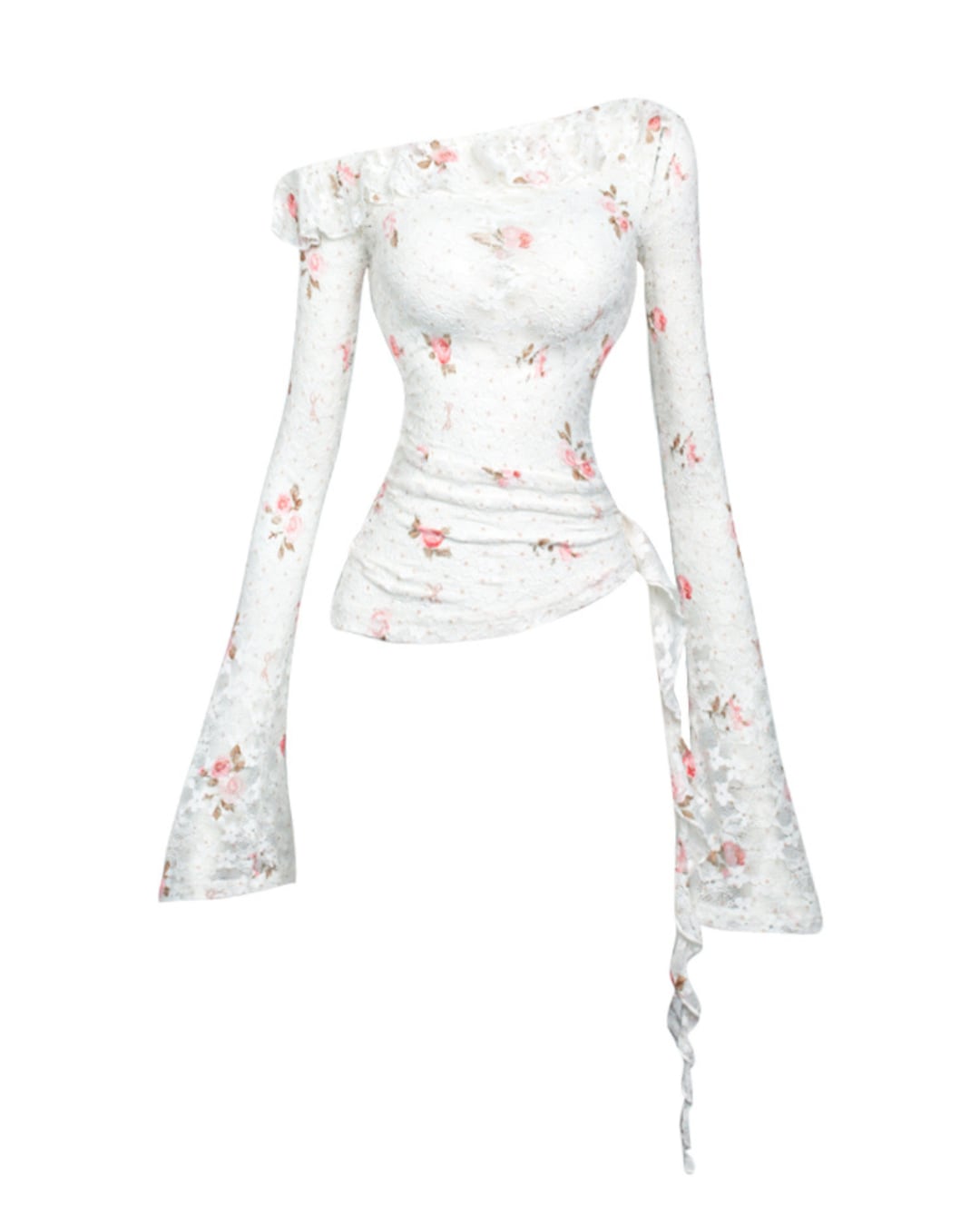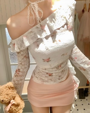 ローズ柄が魅力の伸縮性のあるレーストップス♡