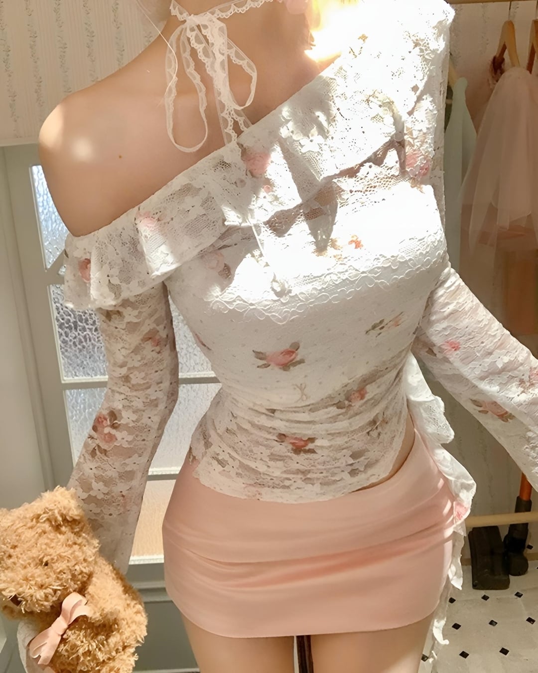 片側で揺れるフリルがポイント.*・゚