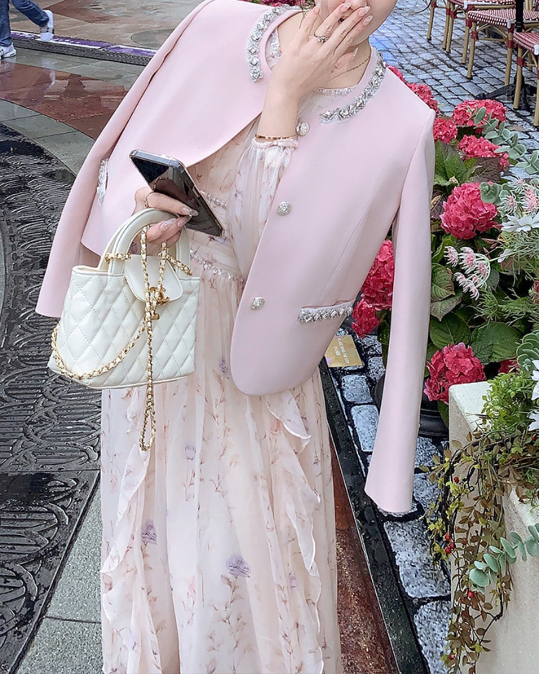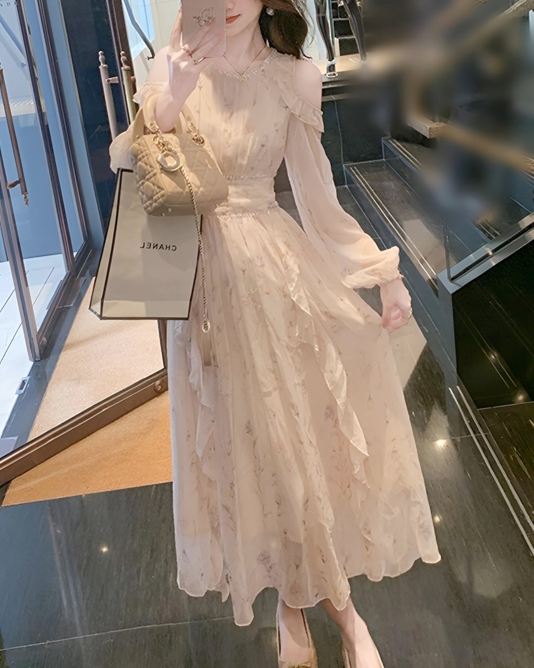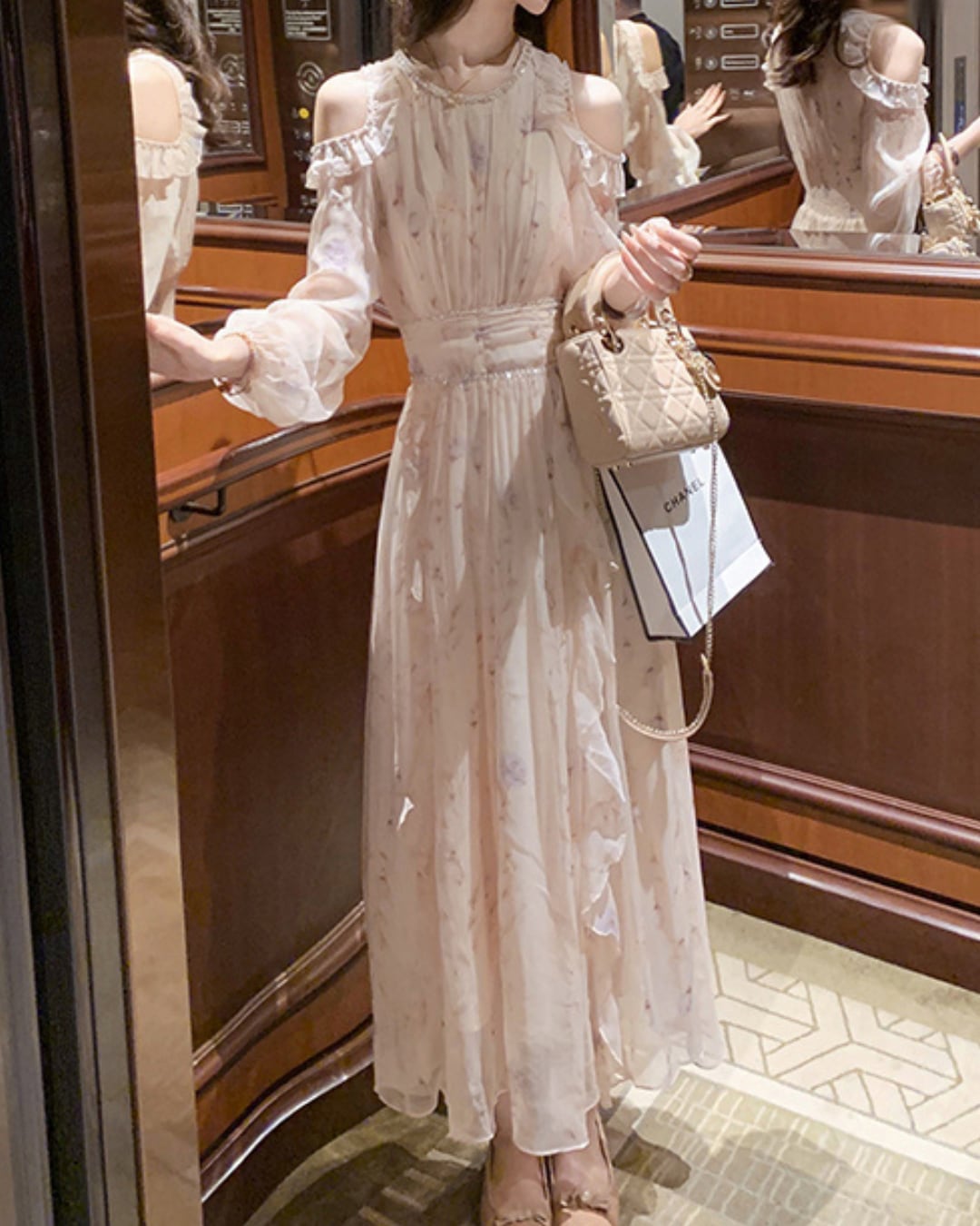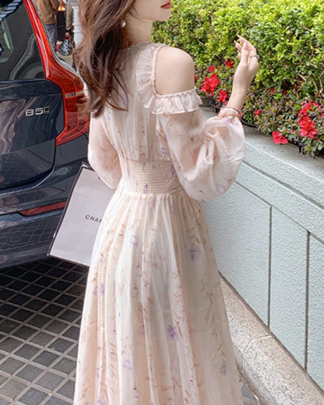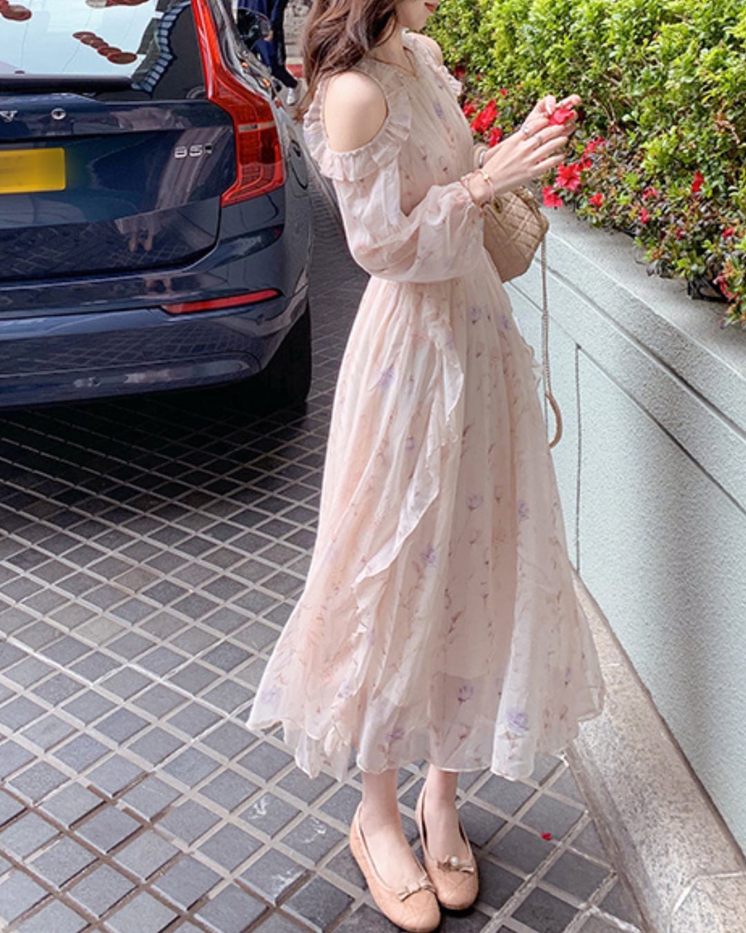 フェミニンな淡い花柄のフリルワンピース♡